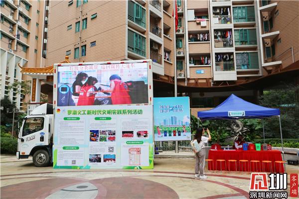 在漁民村文化廣場(chǎng),垃圾分類宣傳車上的LED屏幕播放著垃圾分類減量宣傳視頻,供社區(qū)居民觀看學(xué)習(xí),據(jù)悉,這是全市首輛垃圾分類宣傳大篷車。而此輛垃圾分類宣傳車從漁民村發(fā)車也有著重要意義,上世紀(jì)70年代,漁民村趁著改革開(kāi)放的春風(fēng),發(fā)掘地域的優(yōu)勢(shì),做出了改革的第一步嘗試,經(jīng)過(guò)四十多年的發(fā)展,漁民村不僅夯實(shí)了物質(zhì)基礎(chǔ),更是在精神文明層面上有了長(zhǎng)足的發(fā)展,如今漁民村也成立了自己的志愿服務(wù)組織—深圳市羅湖區(qū)民樂(lè)志愿者協(xié)會(huì)。