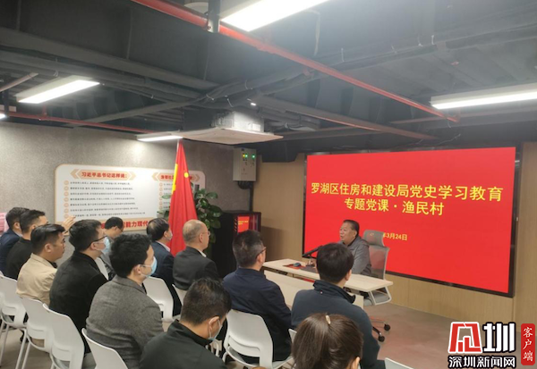 隨后,老黨員劉愛民為大家講了一堂深刻地專題黨課。現(xiàn)場,他用樸實的語言講述了漁民村改造之初,在區(qū)委的領導下,區(qū)住房建設局克服重重困難,為漁民村的改造不懈奮斗的故事。他表示,希望大家秉承住建人敢擔當、善作為、嚴紀律、正作風的優(yōu)良傳統(tǒng),發(fā)揚奮斗精神,為建設“灣區(qū)樞紐、萬象羅湖”交出優(yōu)異的住建答卷。