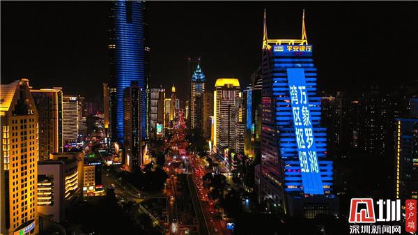 燈光,是營造夜間魅力最重要的一環。羅湖區通過對深南東路景觀照明、“金三角”金融商業核心區燈光夜景、羅湖口岸樓宇景觀照明進行提升,打造出具有羅湖地域性和標志性的特色燈光夜景,突顯“萬象羅湖”的夜間形象。