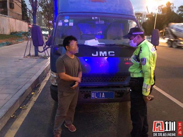 經確認,該車駕駛員陳某涉嫌使用偽造、變造的機動車號牌。根據《深圳經濟特區道路交通安全違法行為處罰條例》第32條第1款第2項:使用偽造、變造機動車登記證書、號牌、行駛證、駕駛證的有關規定,現場民警依法扣留其機動車并予以5000元罰款。