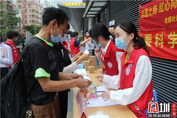 在現場服務的義工中,林哲妮是其中一員,她剛從外地旅游回來,放下行李就直接到了宣傳現場。林哲妮在這個社區生活多年,認識的人很多,看到她就說:“又出來做義工了?”并自覺接過她手中的宣傳資料。在旁邊樓宇上班的陳曉甜女士就受了林哲妮的影響,也表示可以就近做義工,還幫兩個同事也報了名,并當場掃社區志愿者群,加入志愿者的行列。