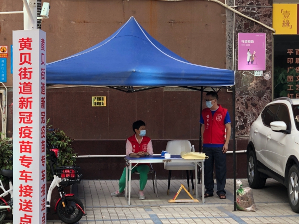 炎炎烈日,為貼心服務(wù)群眾,黃貝街道設(shè)立了接種新冠疫苗專(zhuān)車(chē)接送點(diǎn)。接送點(diǎn)的義工告訴記者,在戶外工作特別消耗水,一個(gè)上午就喝掉四五瓶飲用水,雖然準(zhǔn)備了防曬的雨棚,但路上的熱空氣卻躲不掉,一會(huì)兒下來(lái)也是大汗淋漓,不過(guò)能為群眾服務(wù),盡快建立全民免疫陣線,這份守候很值得。