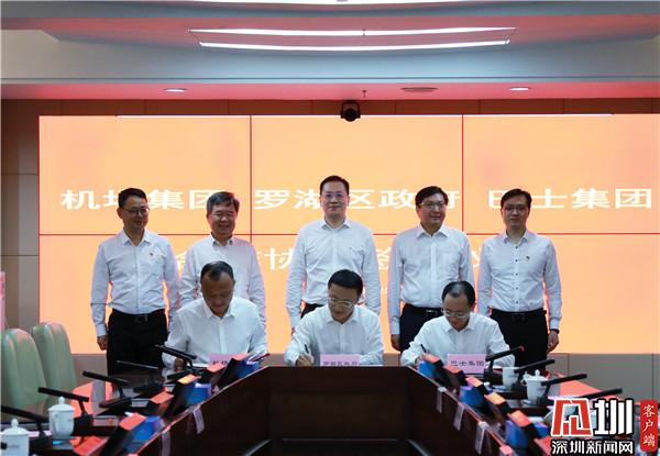 見圳客戶端·深圳新聞網5月26日訊(記者 劉嘉敏)5月25日上午,羅湖區人民政府與深圳市機場(集團)有限公司、深圳巴士集團股份有限公司舉行清水河城市候機樓合作框架協議簽約儀式。在羅湖區委書記羅育德、深圳市機場(集團)有限公司董事長陳金祖、深圳巴士集團有限公司董事長戴斌、廣深中青班掛職干部等共同見證下,羅湖區委常委、常務副區長范德繁、機場集團副總經理林小龍、巴士集團黨委委員高波代表三方進行簽約。
