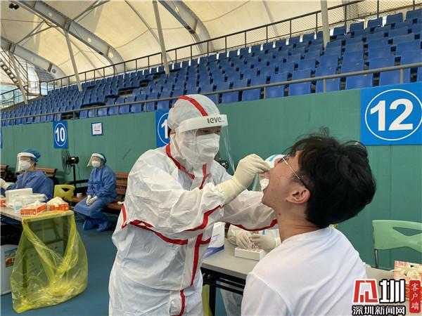 “根據當前疫情防控工作要求,結合羅湖區實際情況,我們在28日啟用去體育館這個臨時采樣點,現場我們可以看到整個采樣工作是很有秩序的,因為我們在每個時間段安排不同的人群進行采樣,所以不會出現排隊擁擠等情況。”羅湖區衛健局公共衛生和職業衛生科科長江正談道,羅湖成立了一支擁有1200人的平戰結合應急采樣隊,隨時為疫情防控工作做好備戰準備,一旦有需要,隨時就可以投入戰斗。“現在這個臨時檢測點每天的采樣量大概在5000個左右,我們很有信心,能夠打贏這場戰‘疫’。”江正說。