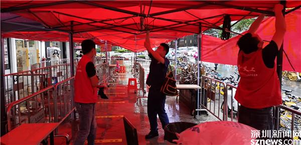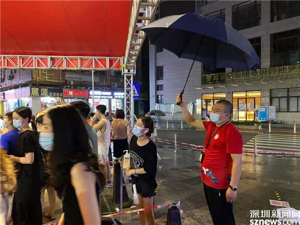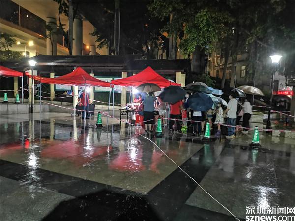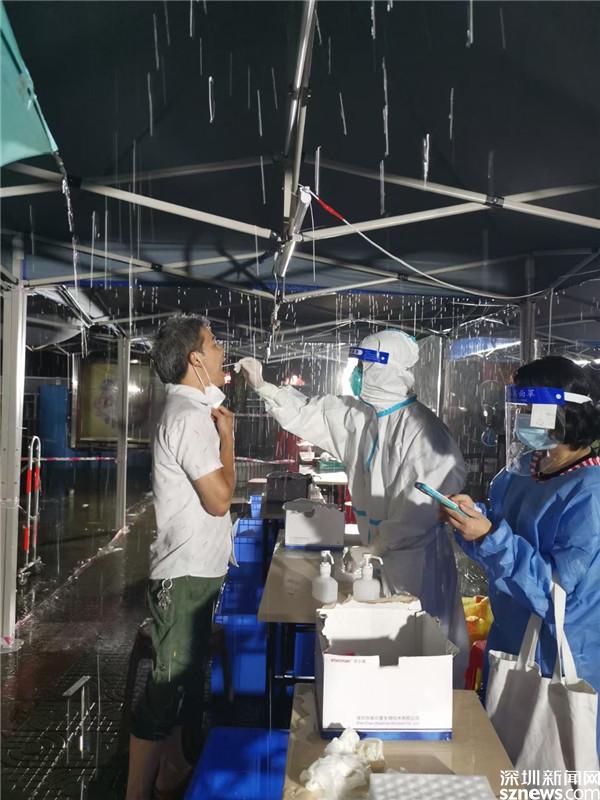 讀特客戶端·深圳新聞網2021年6月21日訊(記者 李慧)6月21日晚及6月22日一早,深圳雷雨交加,深圳市氣象臺2021年06月22日07時10分在多個區域發布暴雨紅色預警,羅湖也包括其中。有那么一群人,嚴陣以待、逆雨迎風,堅守在抗疫一線。記者到各核酸檢測點看到,醫護人員和社區義工們仍然冒著風雨,堅守在核酸采集的崗位上。