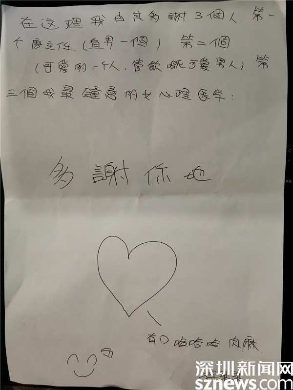 隨后,我們便立即采取措施積極應對,聯系了深圳市康寧醫院的專家會診后制定解決辦法。當時,我們按照“一人一策一專班”原則,每日上報小徐的身體以及心理情況。