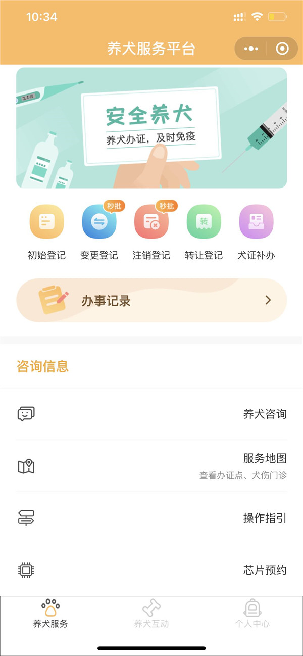 溫馨提示:尚未辦理養犬登記的市民朋友,可以登錄“廣東政務服務網”或通過微信搜索“深圳市養犬服務”小程序,足不出戶便可在線辦理養犬初始登記。養犬服務平臺可根據實際需求申請辦理初始、變更、注銷等登記事項,還可進行芯片預約、通過地圖查看養犬服務機構(辦證點、犬傷門診)地址及聯系電話等。