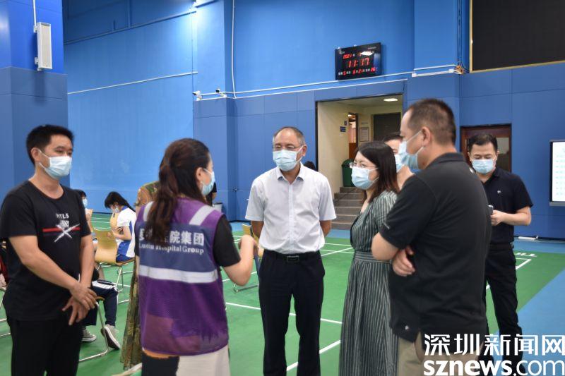 當天11時許,羅湖區教育局局長殷剛一行來到羅湖高級中學接種現場,檢查15-17周歲學生疫苗接種工作情況,詳細了解了具體工作安排和工作流程,對做好下一步疫苗接種工作提出了指導意見,要求學校進一步加大工作力度,確保應接盡接,圓滿順利完成疫苗接種任務。