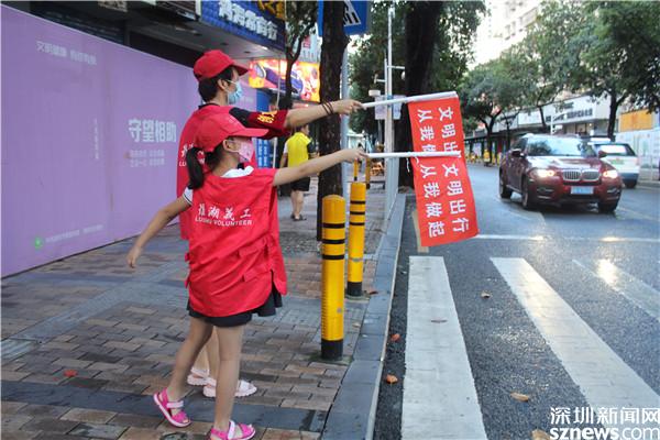 讀特客戶端·深圳新聞網2021年8月27日訊(記者 劉嘉敏 通訊員 楊紀歐)乘著文明之風,拉住暑假的尾巴,母女一同身穿紅馬甲,臂戴“創文監督員”的紅袖章,做義工勸導交通,倡導“文明出行,從我做起”,讓這個暑假更有意義。