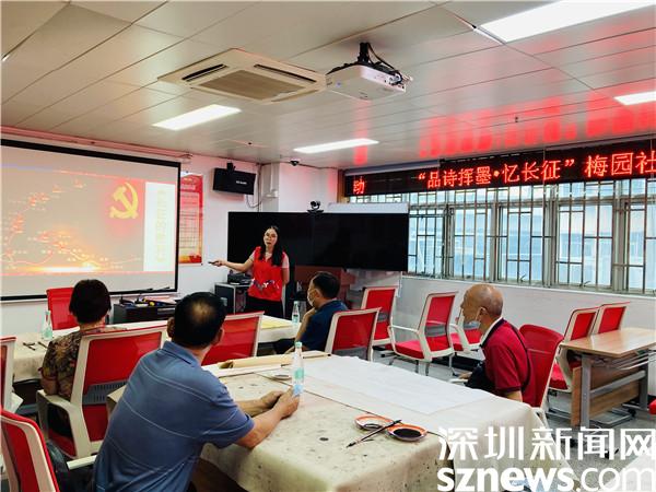 讀特客戶端·深圳新聞網2021年9月9日訊(記者 郭含笑 通訊員 梁嘉麗/文 張亮亮/圖)今年是中國共產黨成立100周年,在第二十二屆深圳讀書月來臨之際,9月9日下午,深圳市羅湖區清水河街道梅園社區黨委聯合梅園社區婦聯、梅園社區長青老齡大學、深圳市東西方社工服務社駐梅園社區黨群服務中心社工,在紅崗大廈二樓多功能室開展“品詩揮墨?憶長征”讀書月活動。