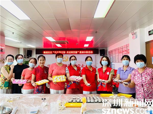 現場有的居民和面、搓餅皮,有的則在一旁稱餡料、壓模具。大家發揮團結互助精神,分享自己的方法和經驗,現場一片歡聲笑語,制作完成的小小的月餅,承載了濃濃的情誼和愛心。