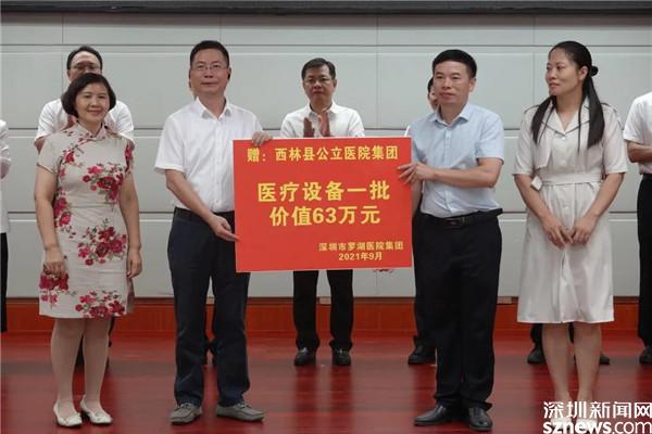 鄉(xiāng)村振興,關鍵在人,醫(yī)療和教育等基礎設施同樣起不可或缺的作用。此次考察中,羅湖區(qū)向西林縣人民醫(yī)院捐贈了一批醫(yī)療設備。據了解,自2017年對口幫扶西林縣以來,羅湖區(qū)共派出8批醫(yī)療隊、92人次駐點西林縣各醫(yī)療衛(wèi)生單位,累計捐贈價值約1000萬元的醫(yī)療儀器和設備,充分保障了地方百姓的醫(yī)療需求,推動了西林縣公立醫(yī)院集團的發(fā)展。