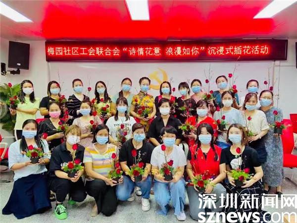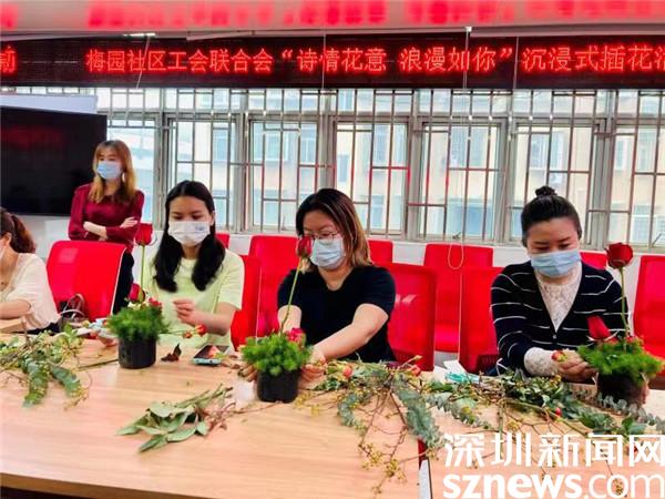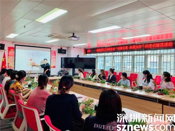 10月19日、21日,深圳市羅湖區清水河街道梅園社區工會聯合會、梅園社區婦聯、深圳市東西方社工服務社駐梅園社區黨群服務中心的社工聯合開展了兩場“詩情花意 浪漫如你”沉浸式插花活動。