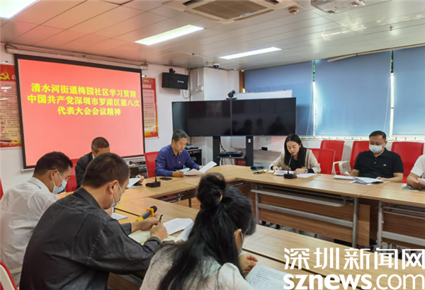 會議由梅園社區黨委書記曾建輝主持。清水河街道四級調研員、梅園社區第一書記黃大滿傳達大會精神,并將劉勝在區黨代會召開期間參加蓮塘街道和清水河街道所在代表團圍繞七屆區委報告所作出的討論精神傳達給各位黨員學習。同時,他表示,中國共產黨深圳市羅湖區第八次代表大會勝利閉幕后,清水河街道迅速召開黨工委(擴大)會議傳達學習羅湖區第八次黨代會會議精神,清水河街道黨工委書記魏剛在會上部署要求街道上下增強使命擔當,進一步讀懂悟透會議精神,把打造社會主義現代化可持續發展先鋒城區總目標分解為各部門、各社區工作任務,以實際行動奮力推進羅湖區第八次黨代會精神落地落實,為建設“灣區樞紐、萬象羅湖”貢獻力量。