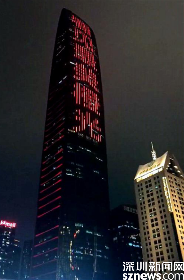 (羅湖地標性建筑為環衛工人亮燈)
