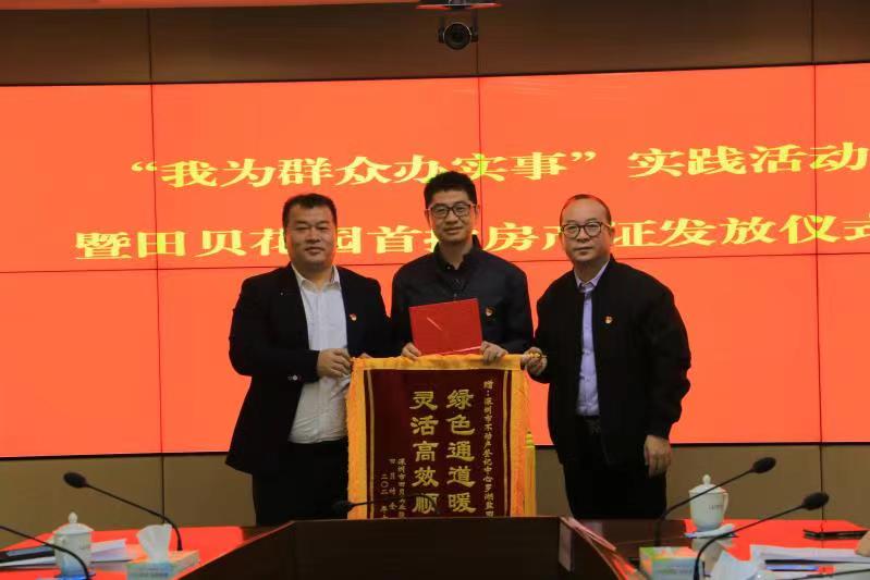 儀式當天,5名村民代表從羅湖區領導的手中接過了房產證,田貝股份合作公司向有關單位贈送錦旗表示感謝。