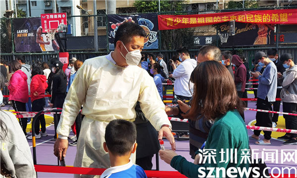 羅湖區審計局黨組書記黃吉南在新村社區防疫現場指導核酸檢測流程。