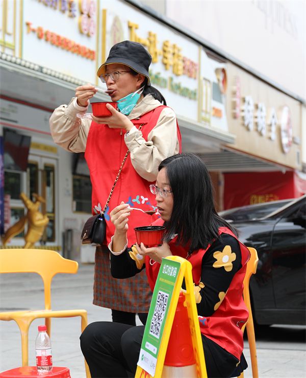 “收到臘八粥很暖心,也很好吃,非常感謝。”翠竹街道水貝片區防疫工作者們一邊津津有味吃著,一邊對記者說道:“我們會一如既往地堅守崗位,為市民筑牢疫情防控的‘銅墻鐵壁’。”