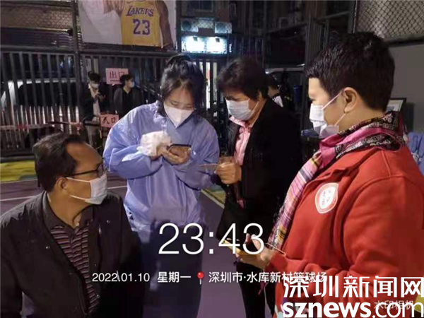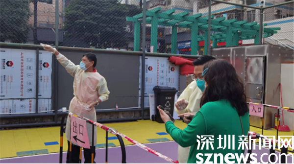 由于樓宇建設年代久遠,基礎設施較為落后,核酸檢測點設在新村社區僅有的一個籃球場空地上。羅湖區審計局下沉干部與社區黨委精心謀劃,按照“隔離檢測、分流進場、專崗專人”的原則,在長28米、寬15米的小方陣里,搭起了6條核酸檢測通道,按照引導員、計數員、掃碼員、講解員等不同職能,重構了檢測流程,定人定崗“流水線”工作,迅速提升了檢測效率。