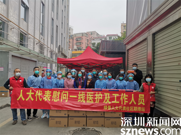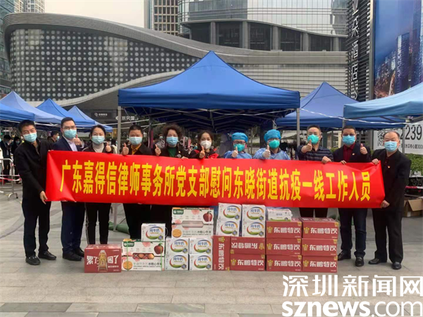 1月10日下午,深圳市人大代表、廣東嘉得信律師事務所主任閔齊雙來到獨樹社區IBC核酸檢測點慰問抗疫一線工作人員,送上牛奶、功能特飲及水果等慰問品,向奮戰在一線人員致敬和感謝,表示將全力做好一線人員關愛和后勤保障工作,齊心協力打贏這場硬仗。