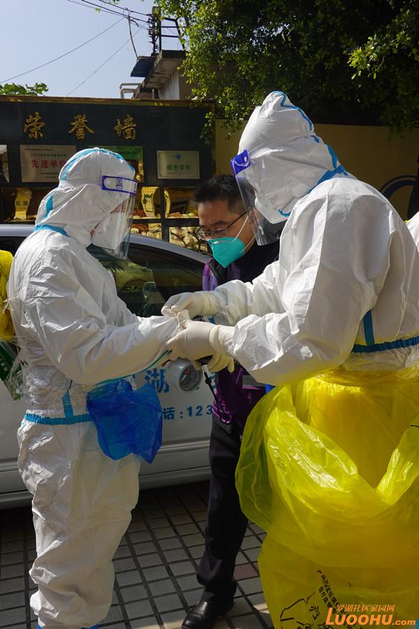 臘八節(jié)剛過,深圳帶著些許涼意,卻也是艷陽高照。“同志們,相互檢查一下手腕腳腕有沒有貼好!穿戴整齊后準備集結出發(fā)啦!”在封控區(qū)外圍的醫(yī)護人員整備區(qū),一群身穿防護服、全副“武”裝的工作人員整裝待發(fā),兩人一組,目光堅定,向著封控區(qū)的入口走去。