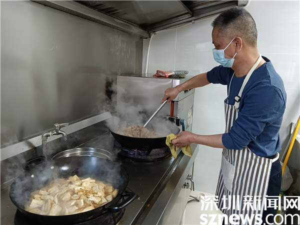 鐘日強(qiáng)是個(gè)熱愛生活之人,有一手好廚藝。在社區(qū)上下齊心抗疫期間,為了保證忙碌在防疫一線的社區(qū)工作人員、區(qū)里和街道的下沉人員以及志愿者能按時(shí)吃飯,強(qiáng)哥在廚房幫廚,幾十人的中餐和晚餐,他洗菜、切菜、炒菜一條龍,飯菜做得色香味俱全。