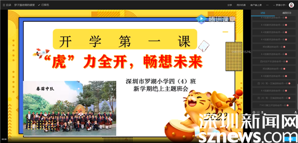 在升旗儀式后,同學們在線上觀看了奮戰在抗疫一線的老師的工作視頻。隨后,4至6年級的主題班會紛紛開始,圍繞“冬奧會”“學雷鋒”等內容在線上課堂展開熱烈討論。