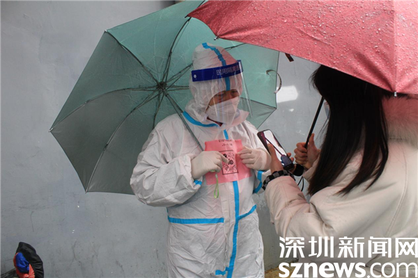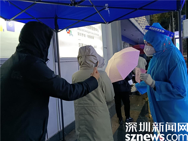 讀特客戶端·深圳新聞網2022年2月24日訊(記者 劉嘉敏 通訊員 楊紀歐)雖然這幾天的冷風冷雨一直不停,氣氛低至6度,但深圳市羅湖區桂園街道老圍社區設在各處的核酸檢測點一直在有序進行著。人們打著雨傘排隊,社區工作人員和志愿者高效地引導,讓等候的人快速地采樣,協助不會操作的人出示粵核酸碼。工作人員的手腳都凍僵了,但沒有人退縮,用自己的“凍”起來,守護著深圳人的綠碼,捍衛著社區的平安。