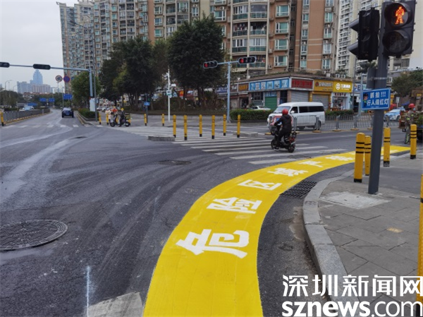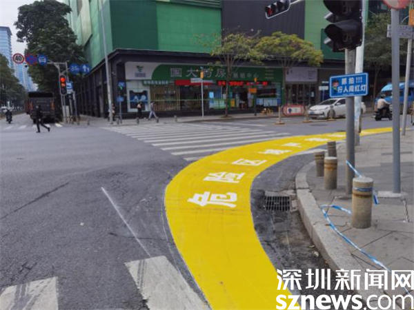 目前,羅湖轄區16個右轉彎危險區警示帶試點設置工作已初步完成,警示帶的視覺效果清晰醒目,既能夠直觀地警示行人及非機動車禁止進入機動車道等待紅綠燈,又能提醒右轉彎車輛在保證安全的前提下“轉大彎”,從而起到提升行人、非機動車、大型車輛駕駛員危險意識的作用。