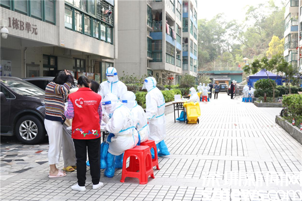 2月28日早上,蓮塘街道各社區(qū)集結工作人員支援長嶺社區(qū),每個樓棟由長嶺社區(qū)黨委委員“一對一”掛點,幫助居民采購配送物資,協助核酸檢測排查、流調排查、生活垃圾清理等,全力保障小區(qū)住戶日常生活需求。據蓮塘街道工作人員介紹,為保證核酸采樣快速、高效,長嶺社區(qū)每棟樓樓下都安排了一個核酸采樣點,助力核酸檢測采樣工作有序開展。