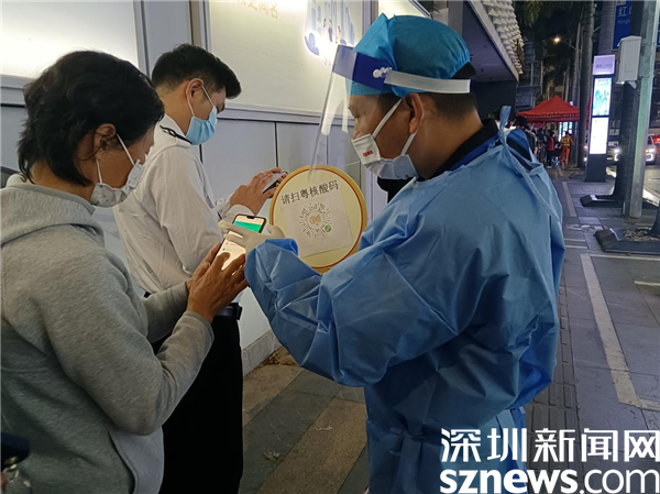游國良剛剛調到位于羅湖區桂園街道老圍社區做保安員,沒想到才過了幾天,他成為了一名志愿者穿上了防護服,轉戰在卡口和核酸檢測點兩個防疫戰場,查驗場所碼和粵核酸碼。他感慨道,“這是我人生做的第一件有意義的事,雖然累,衣服都濕透了,但一點都沒感覺出來,為人民服務就是爽!”