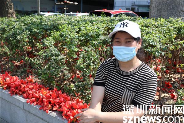 正在文錦花園廣場撿木棉花的李女士說:今天出來曬太陽的時候看到木棉花掉落,于是撿了些想曬干泡水喝,目前的這幾天的慢生活安排是,配合政府政策,不亂走,把身體養好,為這個城市出一份力。