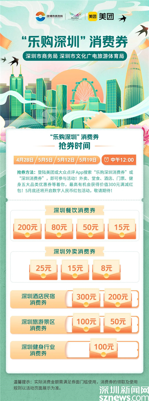 4月30日至5月15日期間,在羅湖區東門和人民南等商圈、KKMALL、金光華等商場,以及轄區內知名餐飲連鎖店消費的市民,可以免費領取數字人民幣滿減券,活動期間可在指定商家現場消費抵扣。
