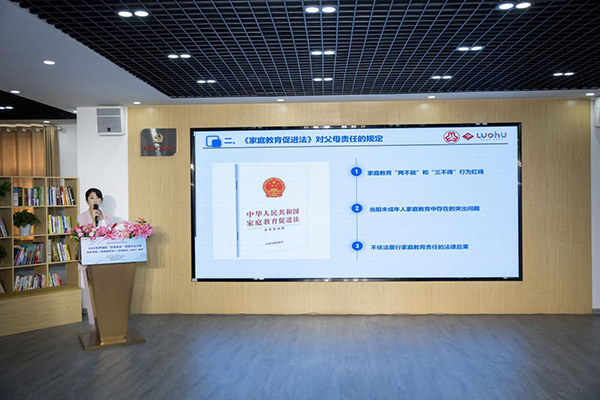 沙龍伊始,羅湖區人民法院民一庭(家事庭)副庭長欒媛帶來《〈家庭教育促進法〉解讀》的專題講座,闡明《家庭教育促進法》的意義,明晰家長“兩不得”“三不能”的行為紅線,并針對當下大多家庭教育存在生而不養、養而不教等突出問題進行剖析,結合工作歷程中生動形象的案例,讓許多家長明確了法律的要求。同時,欒法官也為家長們提出了實用科學的家庭教育內容和方法,也對家校社協同育人機制發表了自己的想法。