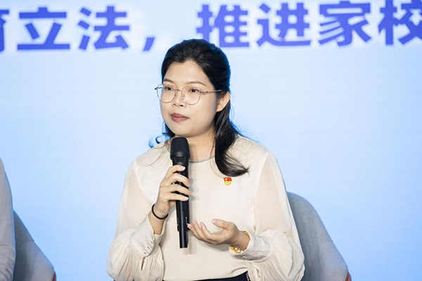 “家長要做好家庭教育,家庭教育要配合學校教育,學校和家庭配合是做好家庭教育的關鍵”,家長代表深圳市兒童青少年健康發展協會理事安天麗也談到自己對家、校、社各盡其職、合作共贏的理解,她認為家長要積極創建各種親子家庭活動,緊密親子關系;積極參與社區組織的家庭教育指導和實踐活動,提升家庭教育能力;同時為孩子創造社會實踐的機會。