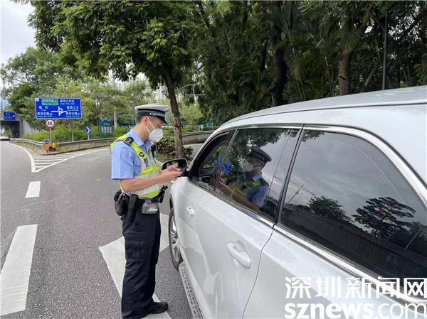5月24日下午,羅湖交警大隊機訓中隊組織警力在人民公園路開展卡口專項整治行動期間,發現一輛車牌號為粵S7***9的小車涉嫌多次違法未處理,于是立即示意該車駕駛員靠邊停車接受檢查。