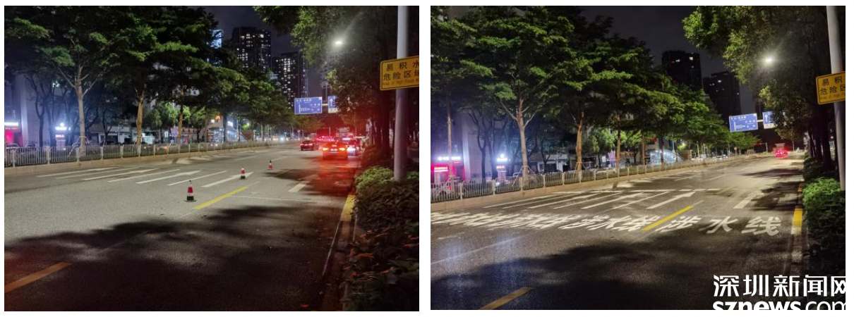 文錦南路區(qū)政府門口涉水線施工前后對比