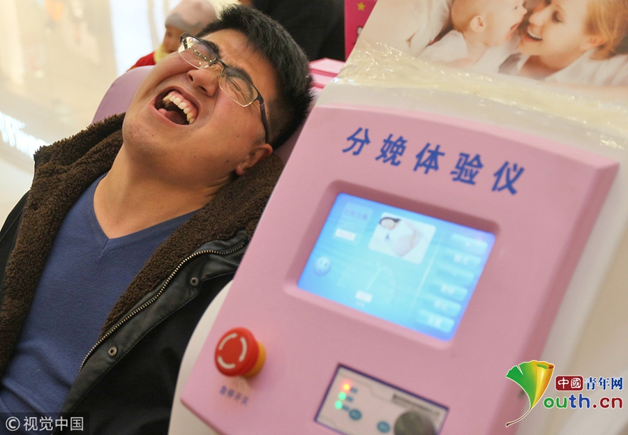 2018年3月8日,“三八”婦女節,山東煙臺大悅城提供了一臺“分娩體驗儀”供男士免費體驗,讓他們體驗女性分娩時的陣痛,了解女性分娩時的忍耐與艱辛。
