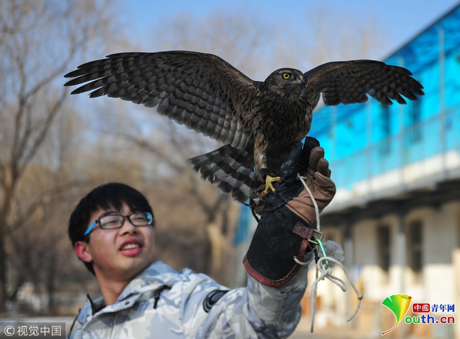 2018年3月11日,遼寧沈陽,蒼鷹等待放飛。當日,沈陽市林業局沈陽猛禽救助中心舉行2018年首次大型公益康復野放活動,這次活動放飛的都是經過救助中心救助后康復的猛禽,禿鷲1只、蒼鷹3只,都是國家二級保護動物,省級保護動物烏鴉1只。