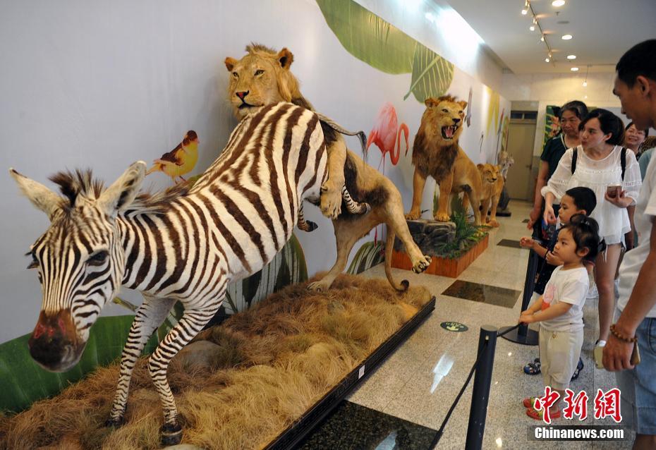 5月27日,各類飛禽走獸活靈活現地出現在民眾的眼前。正在福建博物院展出的第四屆中國動物標本大賽的257件惟妙惟肖的標本作品集中對外開放,讓民眾如進入“動物世界”。本次大賽匯集了全國標本制作企業、博物館、大專院校、研究所等60多家單位參加,標本涵蓋哺乳類、鳥類、爬行類、兩棲類、魚類等動物類群的皮張和骨骼標本。主辦方希望通過標本大賽,向公眾展現動物世界的美麗,宣傳生物多樣性和生態文明,借鑒吸收國際標本制作先進經驗,提高中國野生動植物標本制作的整體水平。圖為大賽參賽作品展吸引了許多民眾前來觀賞。中新社記者 張斌 攝