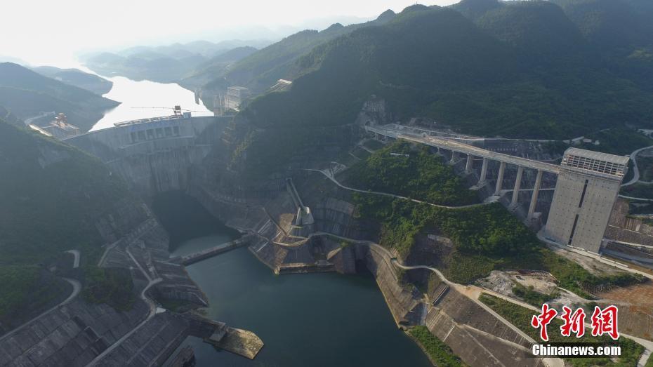 6月5日,貴州省烏江構皮灘水電站通航工程建設已接近尾聲。第一級升船機主提升系統設備調試工作啟動,第二級升船機主提升系統設備基本安裝完成,第三級升船機主提升設備完成80%安裝工作。構皮灘水電站通航工程設計標準為通航500噸級船舶,最高通航水頭199m,是目前世界上通航水頭和提升高度最高、主提升設備規模最大的通航工程。其通航設施建成后,可將黔中物資從貴州遵義縣的烏江渡直達重慶市的涪陵入長江。圖為航拍構皮灘水電站通航工程。中新社發瞿宏倫 攝