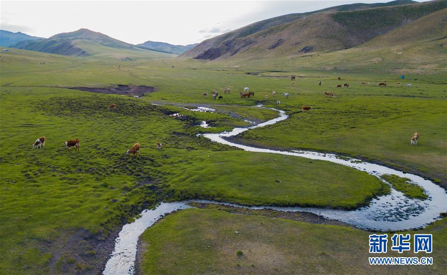 隨著氣溫回升、降雨量逐漸增多,內蒙古草原開始進入全面返青期。新華社記者 彭源 攝