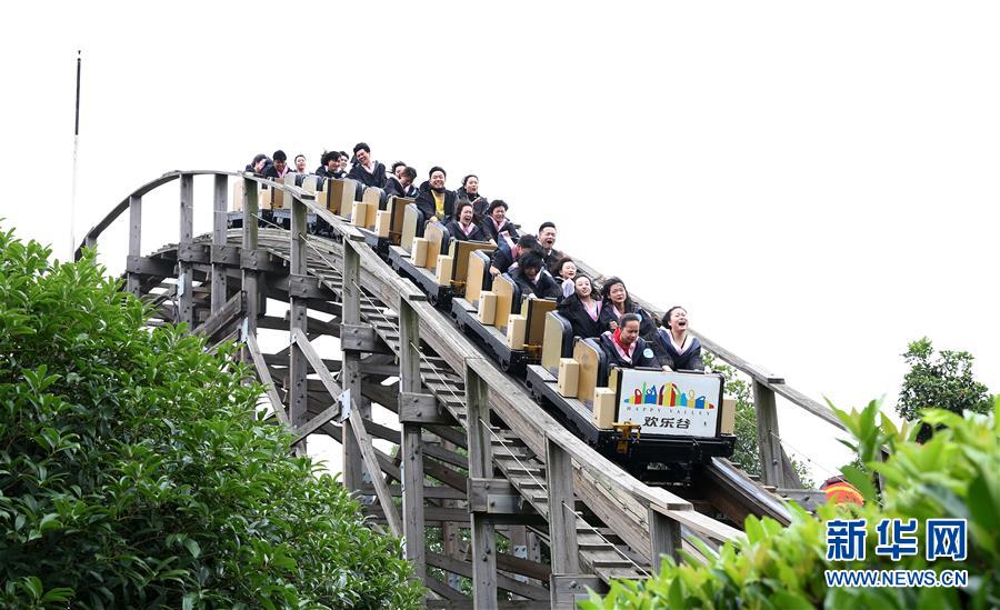 6月10日,畢業(yè)生們?cè)诔俗^山車。 新華社記者 方喆攝