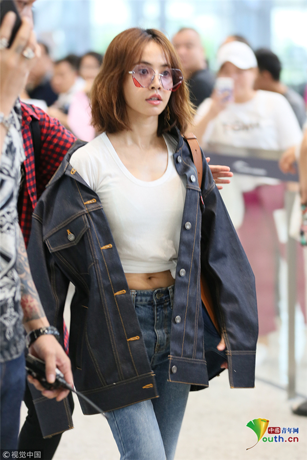 8月7日,廣東省廣州市,蔡依林現(xiàn)身廣州白云機場,半披牛仔外套的她內(nèi)搭白色緊身衣,小露腹部,下身穿拖地闊腿牛仔褲,一路引來頻頻側(cè)目。