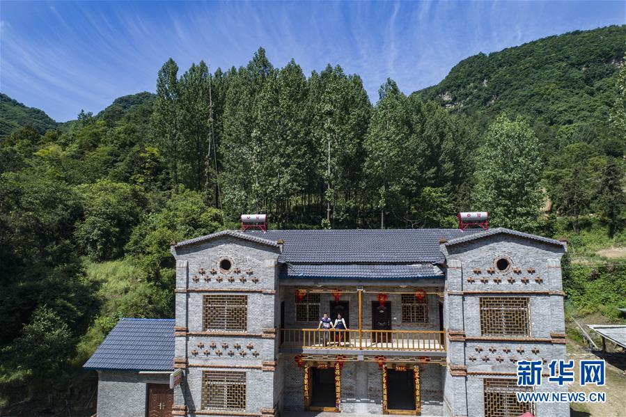 堰河村一棟建在深山中的仿古別墅(5月12日無人機拍攝)。