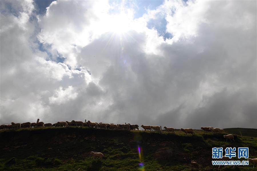 8月27日,當地農民飼養的羊在大海草山吃草。