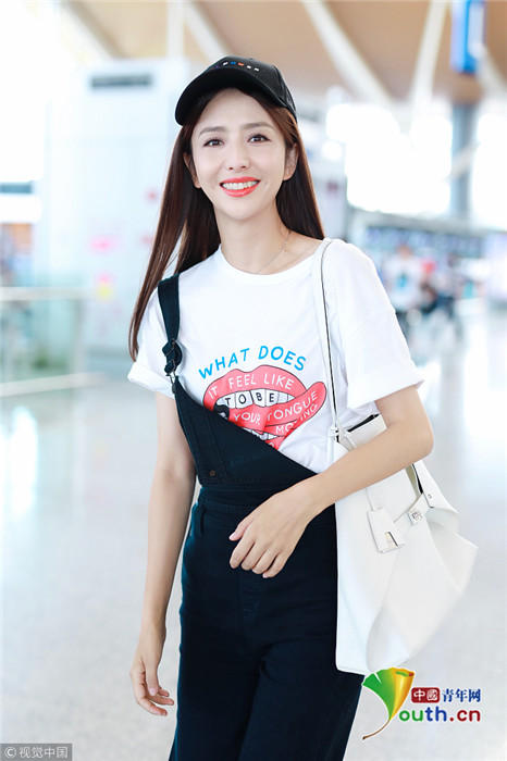 近日,佟麗婭現身機場,棒球帽下一頭黑色長發飛揚,告別驚艷的短發造型重回長發女神的行列,當天她身穿白T搭配背帶褲,滿滿青春活力,墊腳比剪刀手,小動作可愛炸!