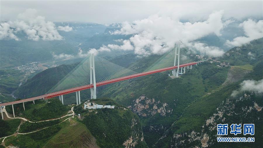 ??? 深圳新聞網訊? 畢都高速公路北盤江大橋是杭瑞高速公路畢都段的控制性工程,位于貴州省和云南省交界處,由貴州省和云南省共建。該橋橋面至江面高差達 565 米,成為目前世界第一高橋。主橋為鋼桁梁斜拉橋,主跨 720 米,目前位居同類型橋梁2016 年12 月 29 日正式通車。