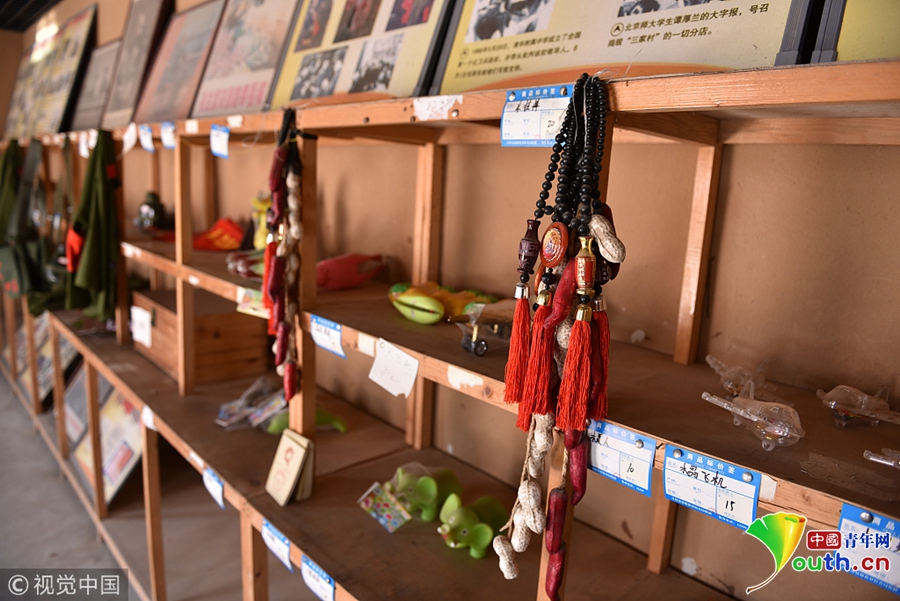 2018年3月11日,在山東省日照市五蓮縣街頭鎮大山深處的李崮寨村,商店內擺放的旅游商品。