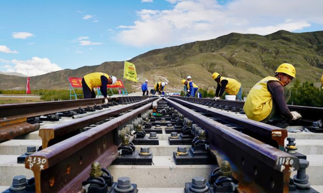 川藏鐵路拉林段首組道岔鋪設成功